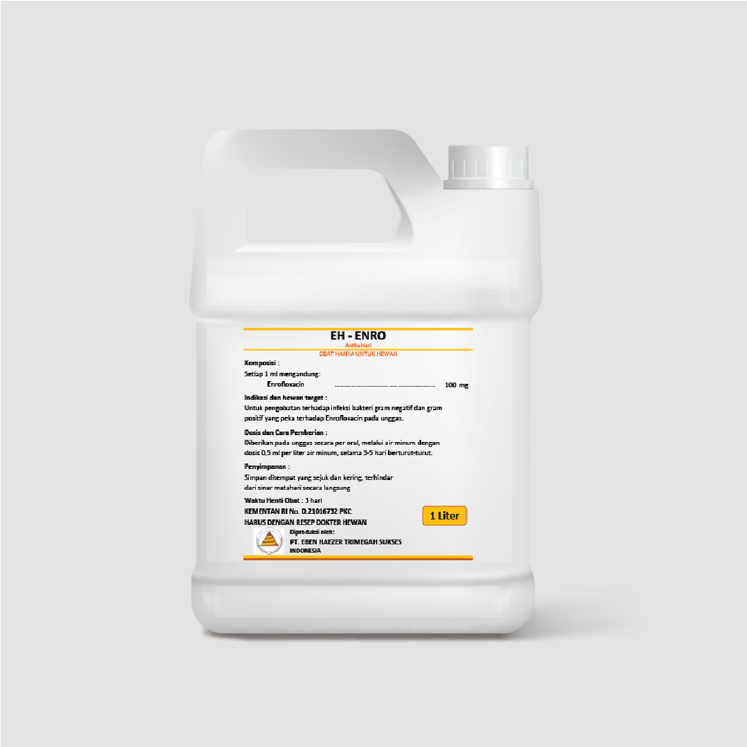 EH-ENROFarmasetik Keras CairSebagai Disinfektan kandang dan peralatan kesehatan hewan. Konsultasi Dosis dan Cara Pemberian :Disinfeksi kandang, peralatan, mesin tetas, tempat lainnya = 10 ml EH-SAFE untuk 12 Liter airOTHER PRODUCTS DISINFEKTAN MULTIVITAMIN PREMIX HERBAL See All